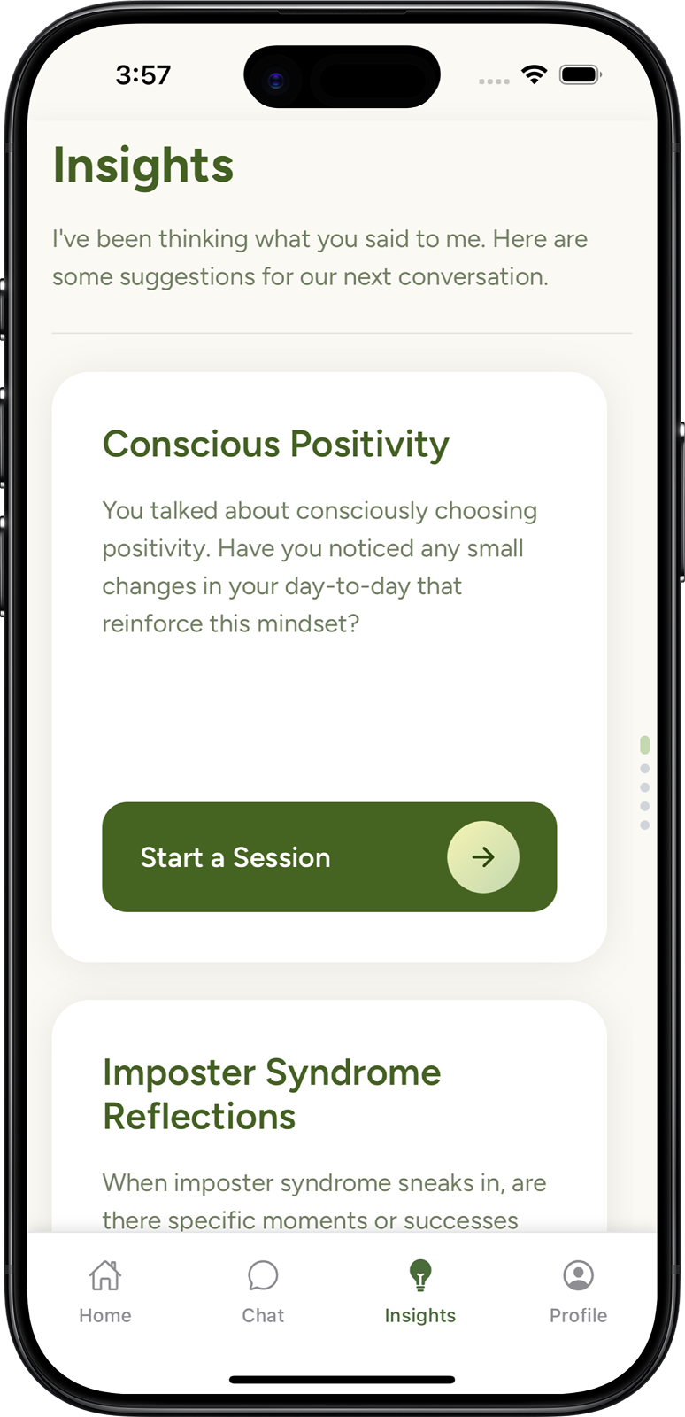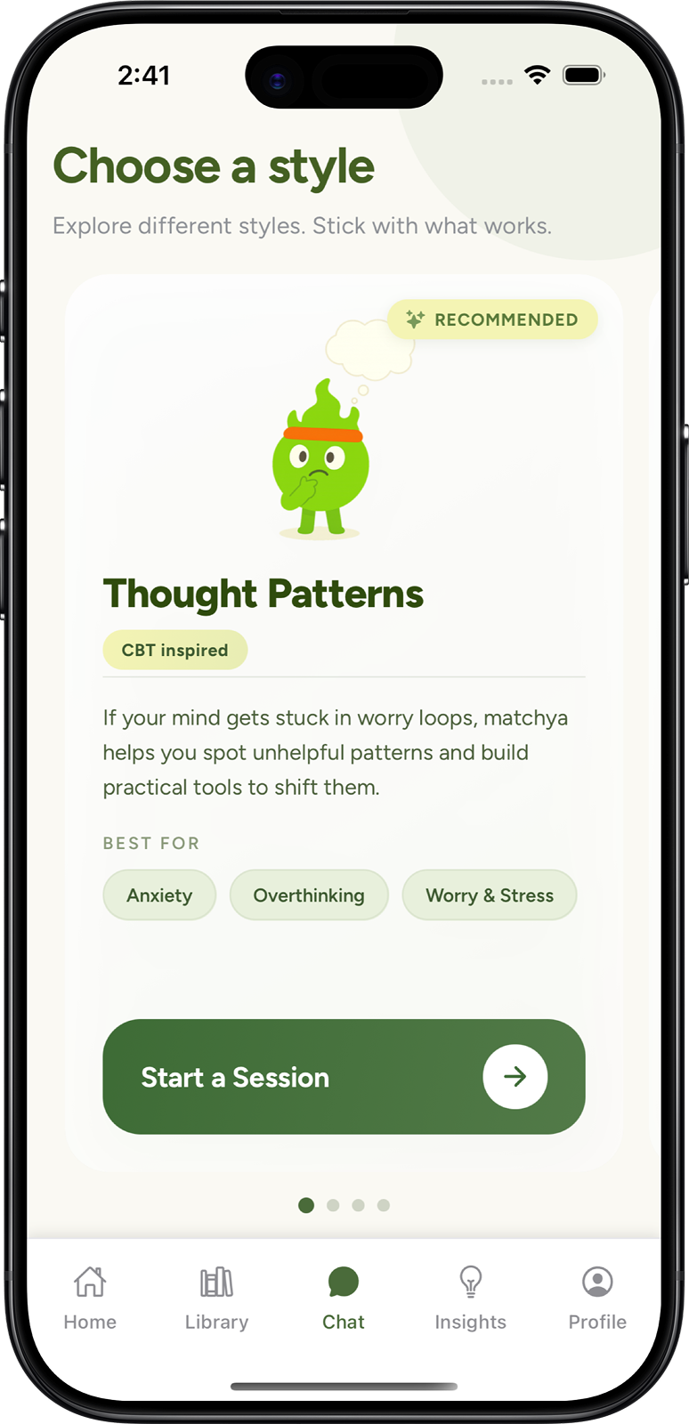 Matchya mimics evidence-backed conversational styles from frameworks like CBT, DBT, IFS, and ACT. Stick with the one that works best for you.