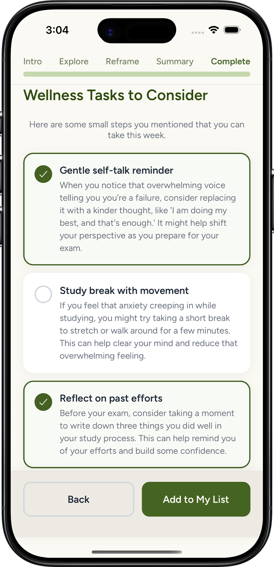 Breathing techniques, grounding exercises, and journaling prompts, all based on real therapeutic practices. Tools you can use anywhere, anytime.